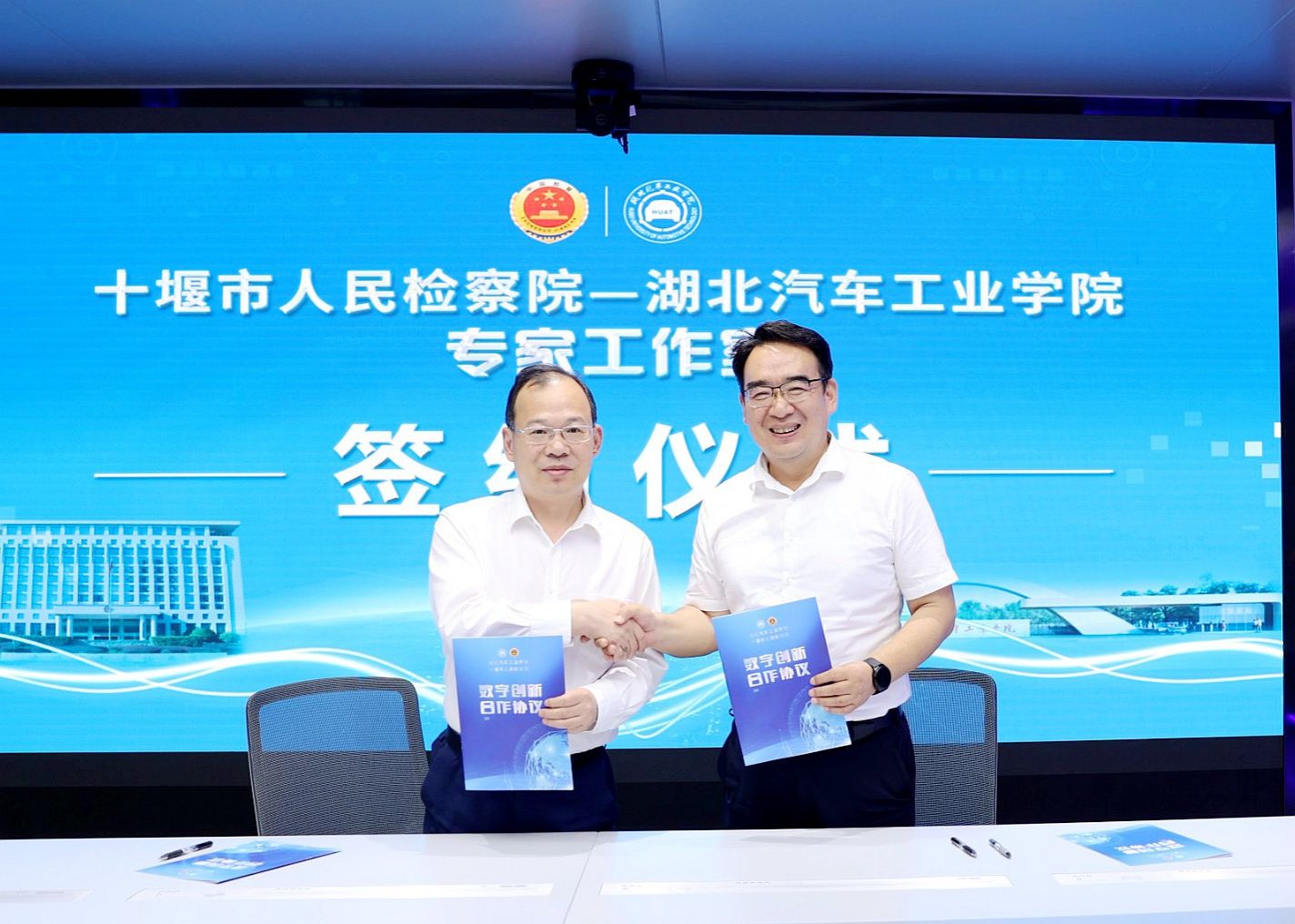 本网讯(文/陈秋林)6月25日上午,校长王晓、副校长张红霞带队赴十堰市人民检察院,出席数字合作协议签约仪式暨“数字检察专家工作室”揭牌活动。市检察院检察长刘少军,副检察长贾俊、黄德胜等领导及双方代表参加。