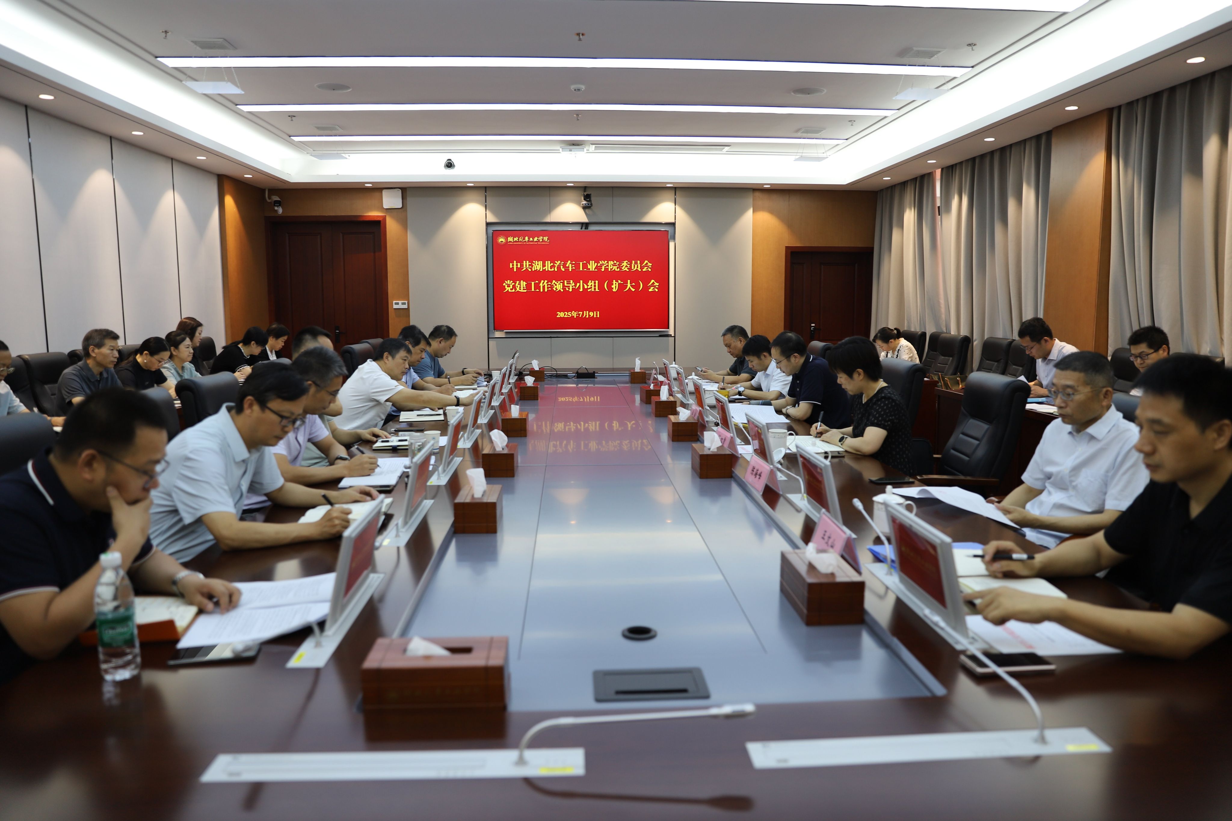 本网讯(文 王雪雪/图 邓玉洁)7月9日上午,学校召开党建工作领导小组(扩大)会议,传达学习习近平总书记在中共中央政治局第二十一次集体学习时的重要讲话精神,上级学习教育有关会议、文件精神及相关典型案例,通报学校学习教育集中整治进展情况,对学校学习教育“回头看”和下一步工作进行安排部署。会议由党委副书记李涛主持,全体在家校领导出席会议。